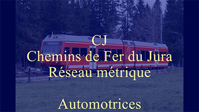 ![]() | ABe 2/6 de CJ núm 631 a 634 (GTW)Passions - Yves Mamin (CJ Red de vía métrica) Presentación del video de los automotores CJ ABe 2/6 631 a 634. Fecha 15/06/2014, 21/10/2014 Lugar: Le Noirmont - Glovelier - Tavannes |