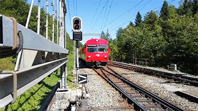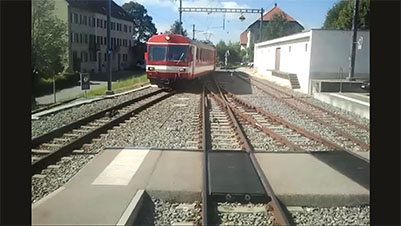 ![]() | Chemins de fer du JuraAntoine Houlmann Viaje en cabina en el automotor ABe 4/4 641 en cabeza del convoy entre les Bois (JU) y la Chaux-de-fonds (NE). |
