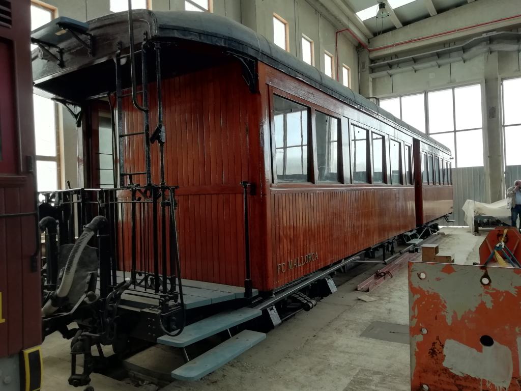 Cuando estuvimos aún no se veían cosas concretas a nivel de restauración, aunque sí muchas piezas preservadas en la nave de Ferrocaib en Son Carrió (Sant Llorenç des Cardassar).