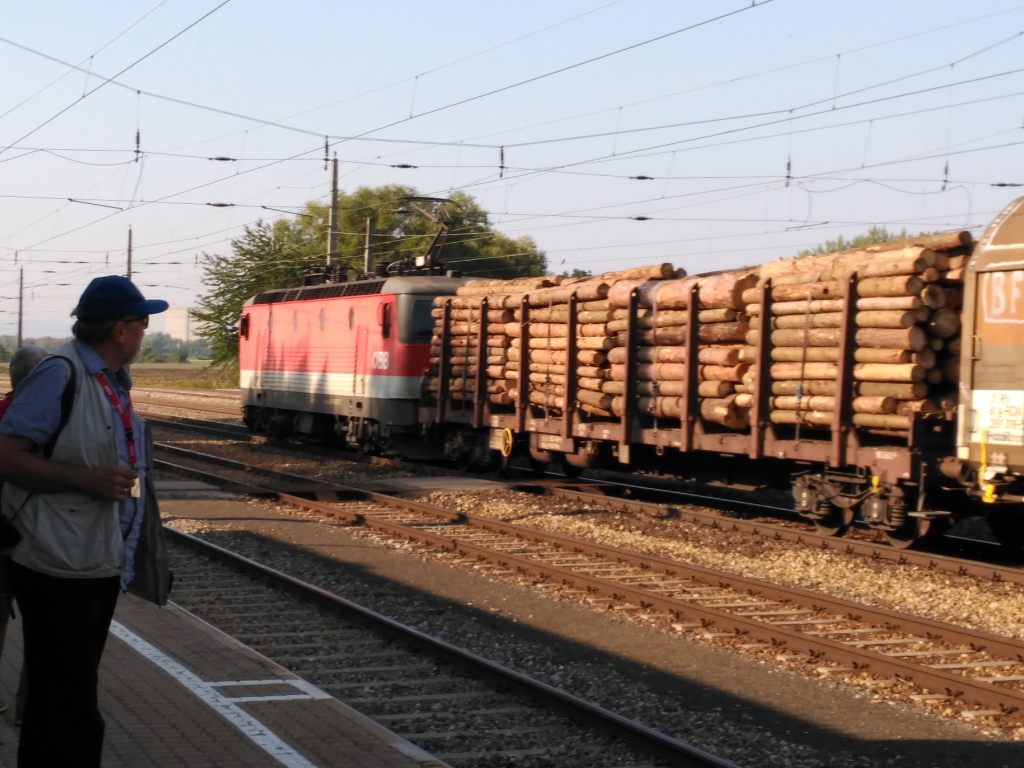 En una de estas locomotoras, con la librea antigua y la bandera de la ayuda americana en uno de sus costados y vagones de dos ejes, recorrimos en un viaje integrado en la malla de la línea. Por tal motivo pudimos comprobar el paso de todo tipo de ferrocarriles por la línea del Semmering. A veces nos teniamos de esperar, o cambiar de vía funcionando en modo banalizado.