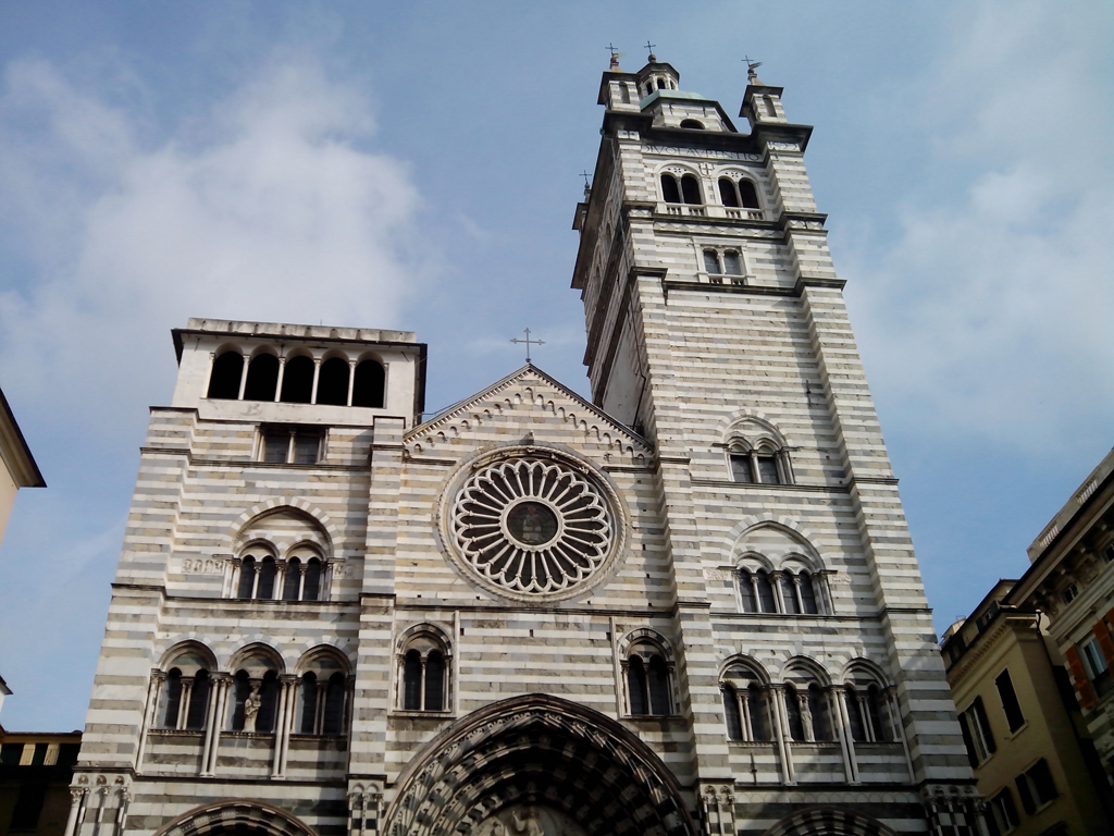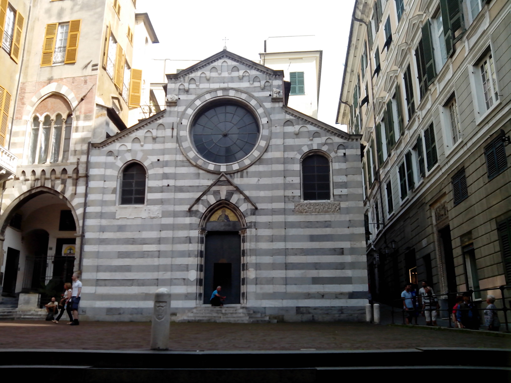 Casi todos los grandes monumentos genoveses están formados por bloques pétreos de dos colores, uno más claro (mármol) y otro oscuro casi negro (Piedra del Promontorio). Esta alternancia entre las piedras de diferente color da a entender desde la edad media que el edificio es noble.