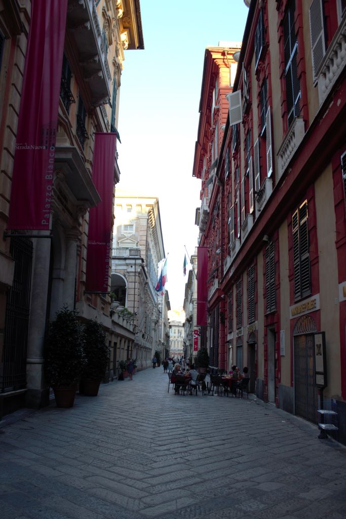sar de tener imbornales huelen fuerte, allí llamados Vicos. Génova era una ciudad que durante mucho tiempo estuvo a merced de los ataques de piratas por su acceso al puerto, por lo tanto tenía murallas y calles muy estrechas entre las casas para autoprotegerse.