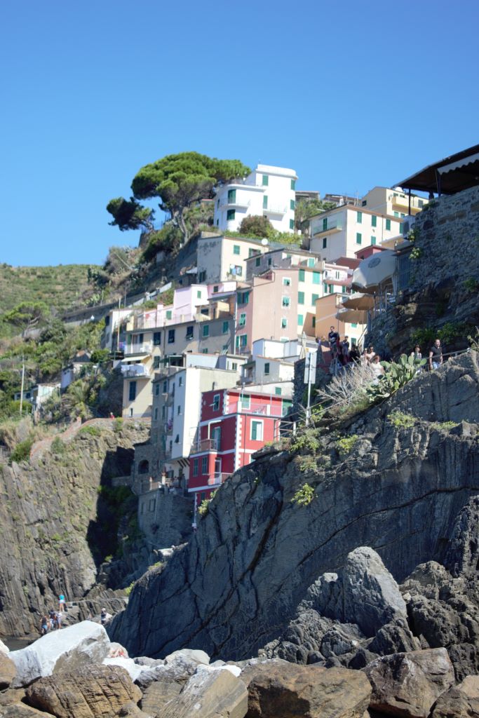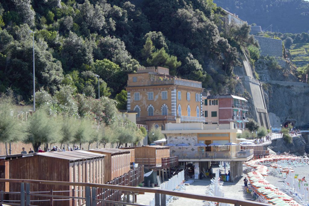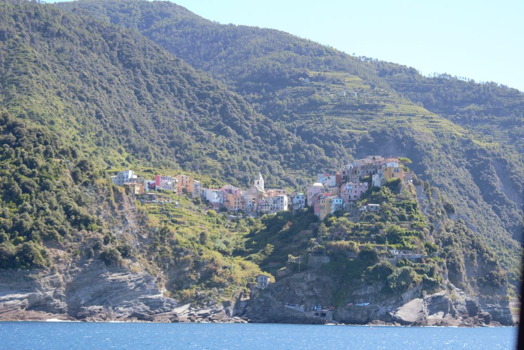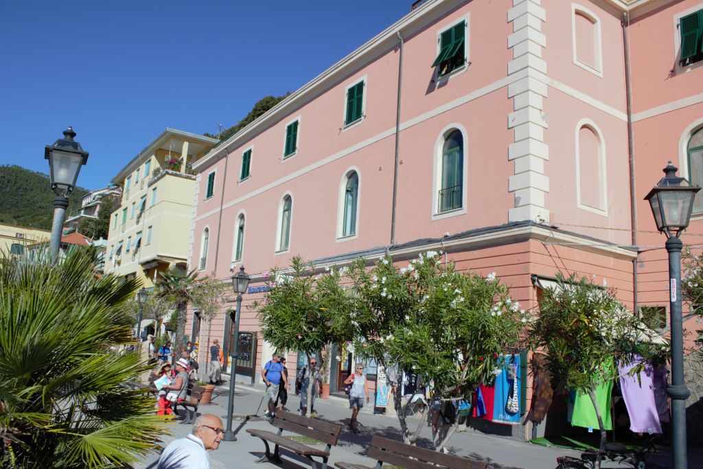 El perfil accidentado de la costa de la Liguria en ese tramo de costa ha obligado a realizar construcciones de aspecto vertical, terrazas para la agricultura y grandes obras de fábrica para tren y carreteras. Todo se acopla a la forma natural de las colinas.