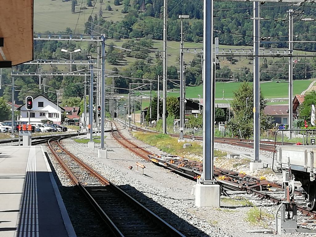 ![]() | Marchandises sur GlovelierMarcel Bueche Mercancías en Glovelier, año 2011. Ferrocarriles del Jura. Vía estrecha. Transporte de madera. |