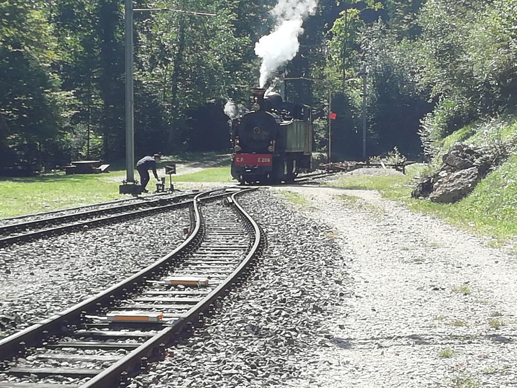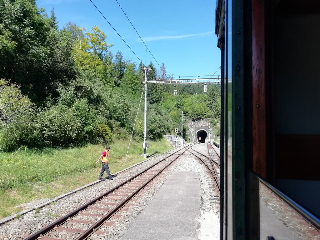 ![]() | Chemins de fer du JuraAntoine Houlmann Viaje en cabina en el automotor ABe 4/4 641 en cabeza del convoy entre les Bois (JU) y la Chaux-de-fonds (NE). |