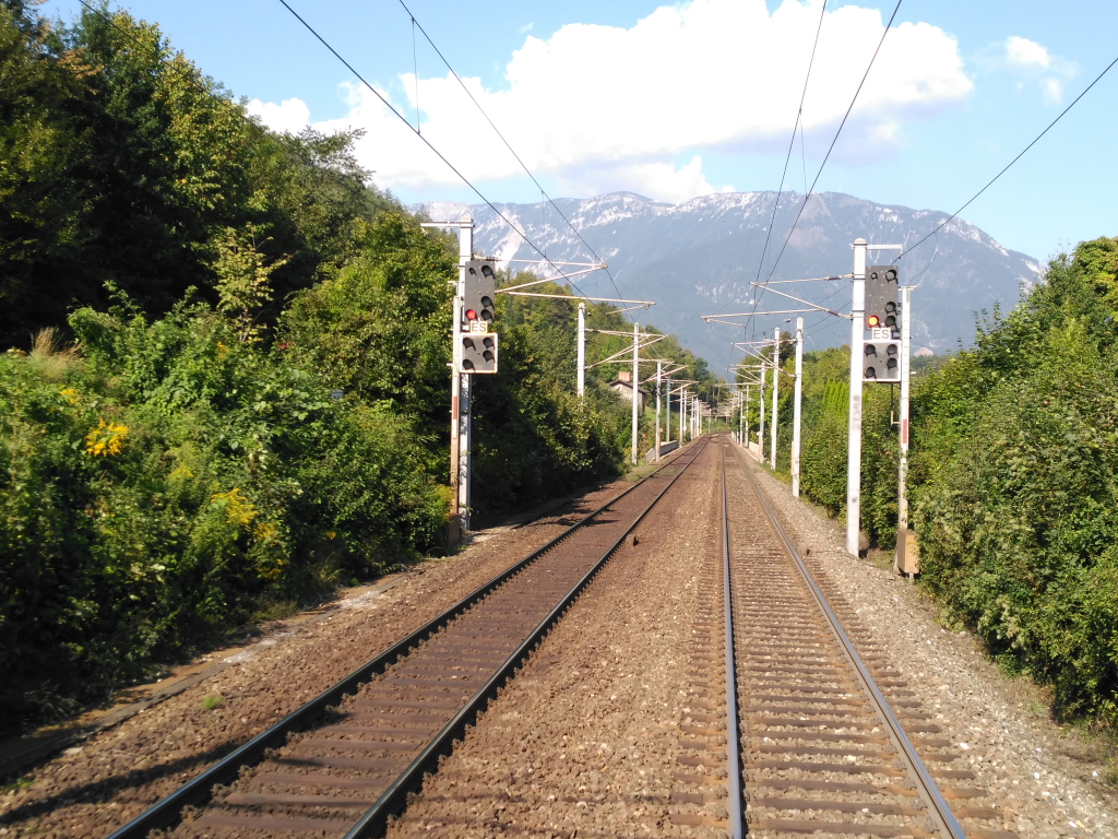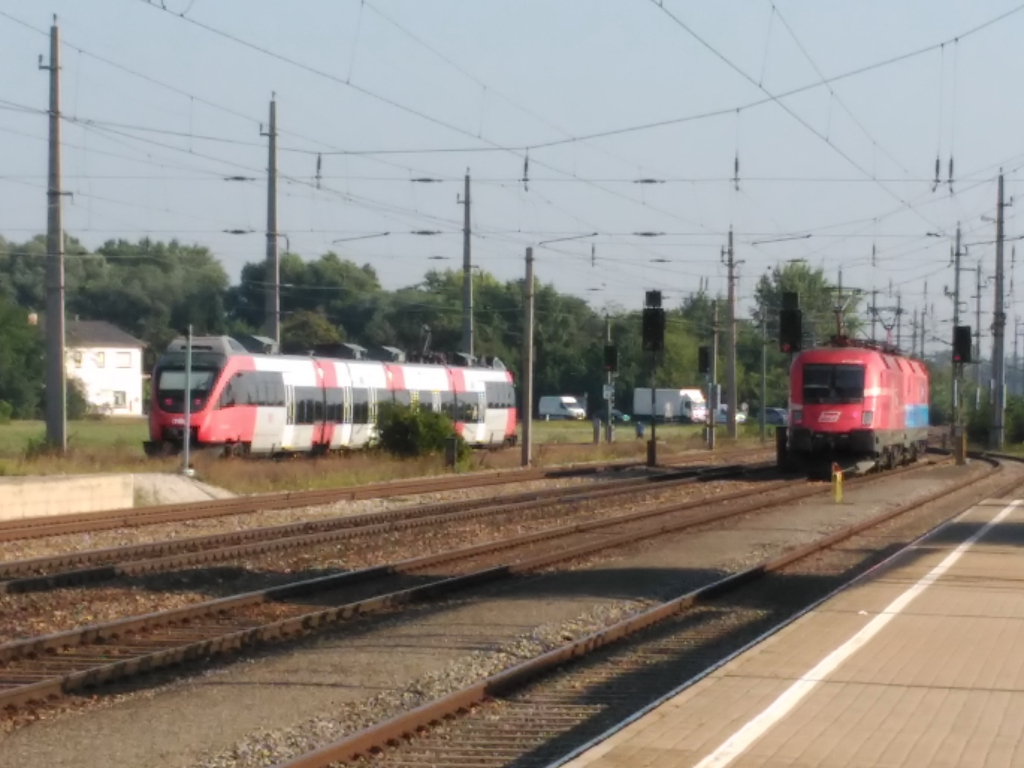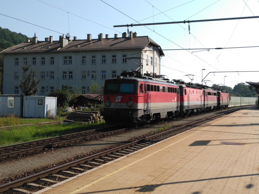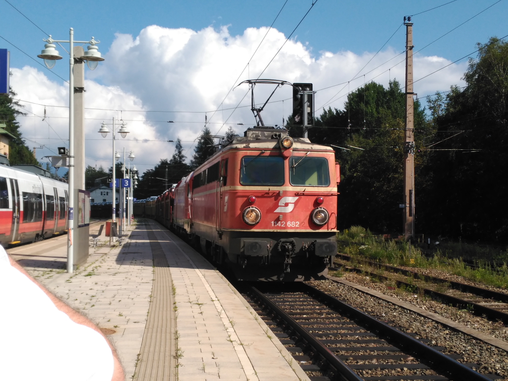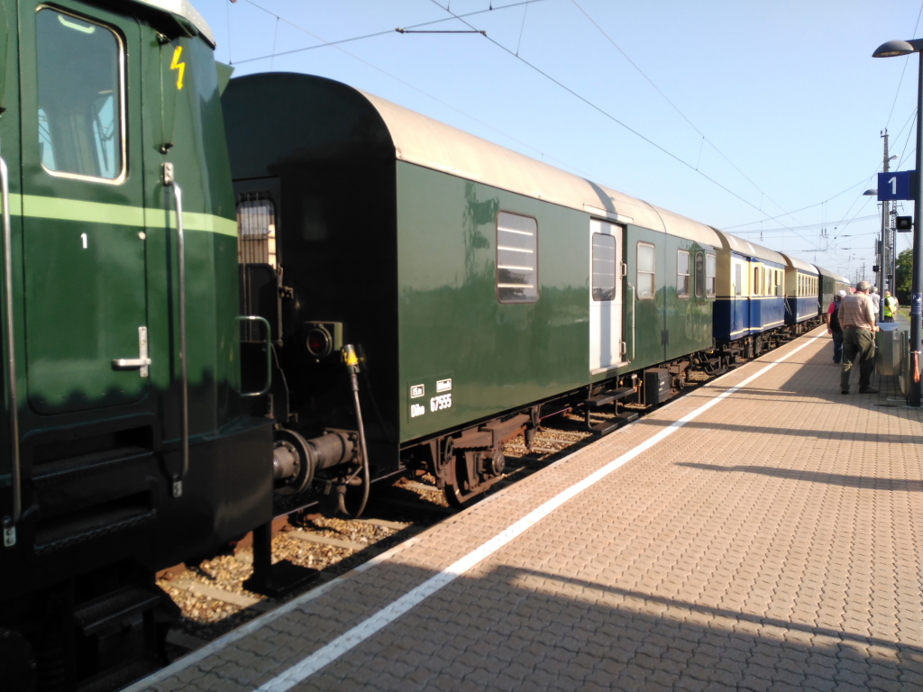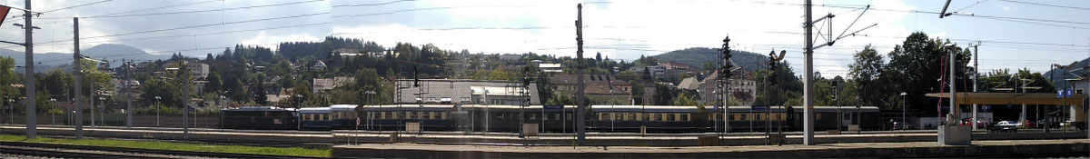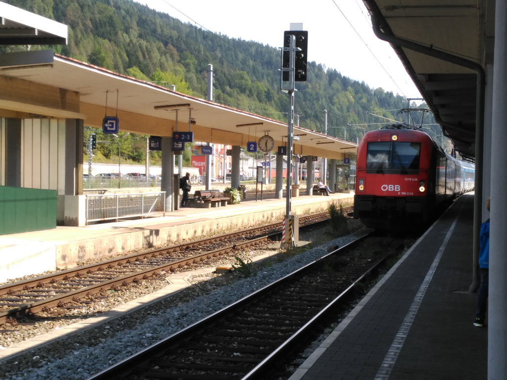 En una de estas locomotoras, con la librea antigua y la bandera de la ayuda americana en uno de sus costados y vagones de dos ejes, recorrimos en un viaje integrado en la malla de la línea. Por tal motivo pudimos comprobar el paso de todo tipo de ferrocarriles por la línea del Semmering. A veces nos teniamos de esperar, o cambiar de vía funcionando en modo banalizado.