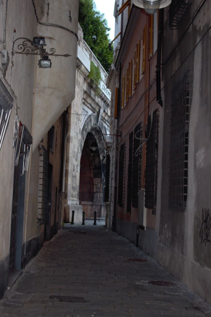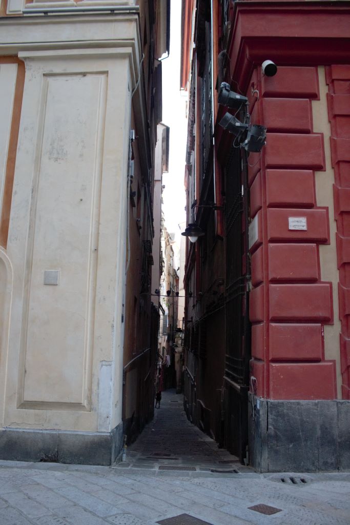 sar de tener imbornales huelen fuerte, allí llamados Vicos. Génova era una ciudad que durante mucho tiempo estuvo a merced de los ataques de piratas por su acceso al puerto, por lo tanto tenía murallas y calles muy estrechas entre las casas para autoprotegerse.
