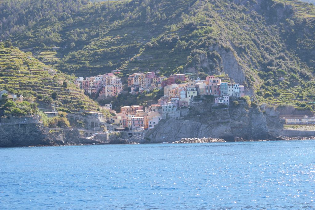 El perfil accidentado de la costa de la Liguria en ese tramo de costa ha obligado a realizar construcciones de aspecto vertical, terrazas para la agricultura y grandes obras de fábrica para tren y carreteras. Todo se acopla a la forma natural de las colinas.