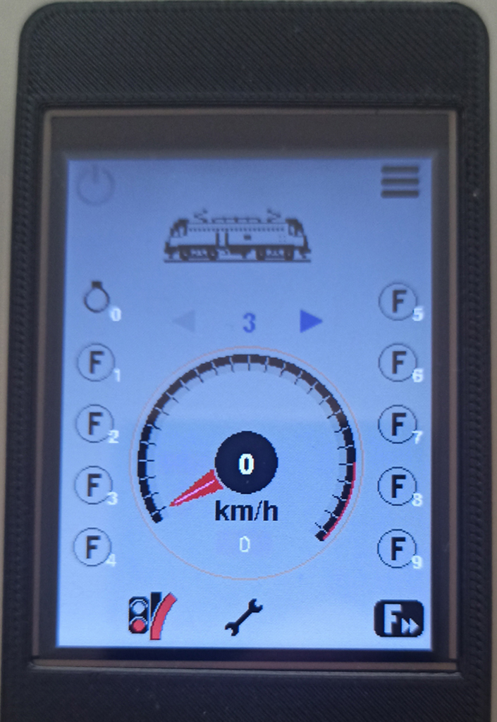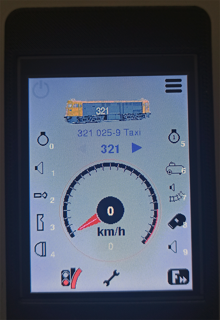 | A la izquierda la locomotora está diseñada por el firmware y es en blanco y negro. En la derecha la locomotora, por lo que el firmware lo toma de ahí y se pueden ver los detalles en color. En los dos casos, los iconos sin iguales y si la función está habilitada, se ilumina con fondo amarillo para saber que está activada. |